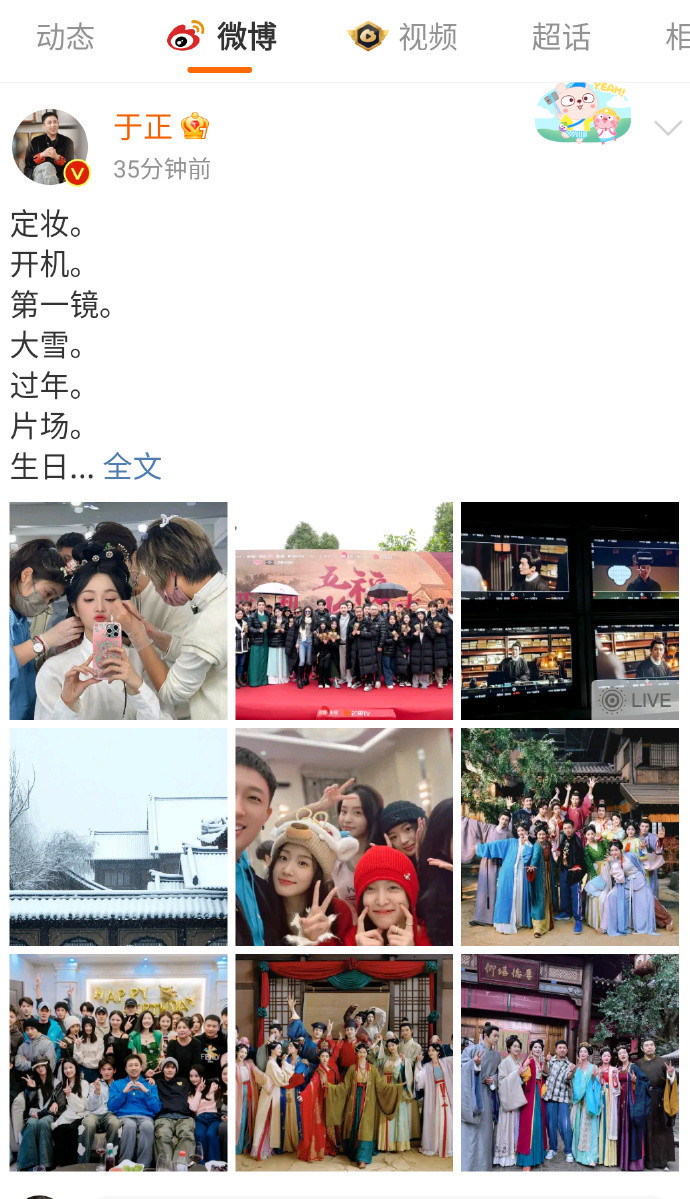 1月17日,于正在社交账号发出消息,他发出《五福临门》主创们的合照,从定妆到杀青,每一张照片都细节满满,从照片上看,这部剧的氛围还是不错的,演员们相处的也十分愉快,随后“于正发五福临门从定妆到杀青”话题登上热搜,该话题立即吸引网友们的关注。